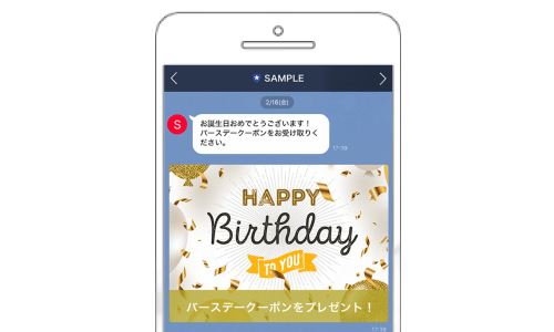 | 記念日配信 | 誕生日、会員登録日などデータベースに格納されている日付をもとに、顧客ごとに異なるタイミングでメッセージを配信します。 |